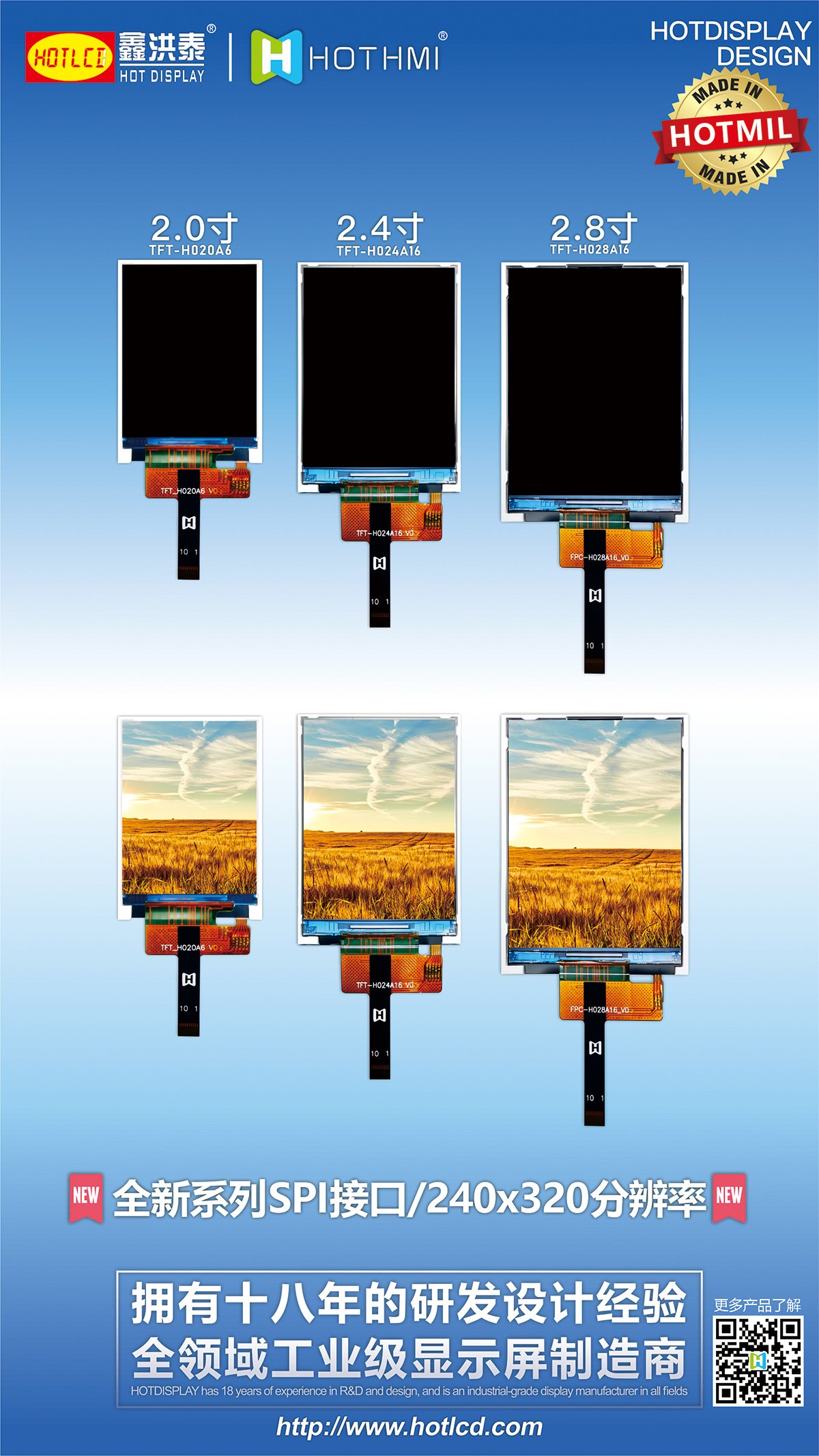 HOTLCD創(chuàng)立于2004年,位于全球電子產業鏈配套最快最全的粵港澳大灣區,是一家專業從事新一代信息產業之LCD液晶顯示模組、TFT顯示屏產品的研發(fā)、生產、銷售和服務的深圳市高新技術企業。